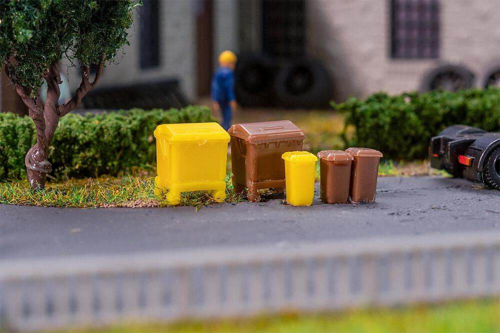 Faller 272926 - Mülltonnen-Set, braun und gelb