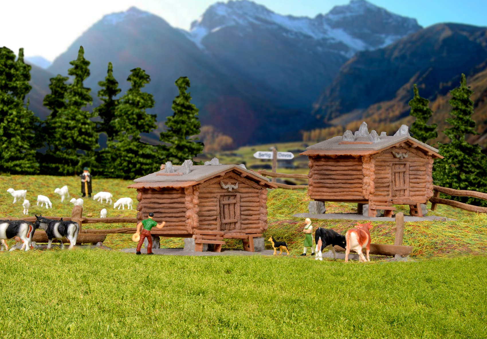 Kibri 37028 - N Stadel Sertig mit Zaun, 2 S