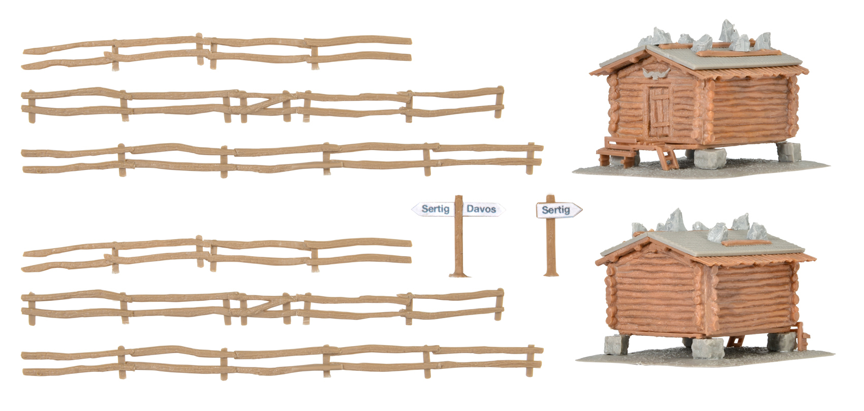 N Stadel Sertig mit Zaun, 2 Stück