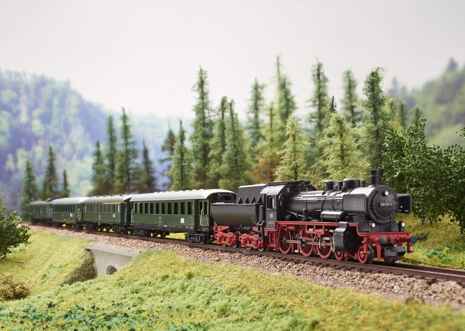 Vorbild: Personenzuglokomotive 038 357-0 (Baureihe 38.10-40) der Deutschen Bundesbahn (DB). Ehemalige preußische P 8. Kessel mit 3 Domen und Witte-Windleitblechen. Wannentender 2´2´T 30.